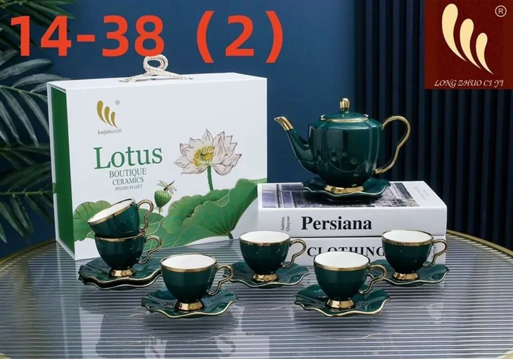 Bộ Ấm Chén Đĩa Kê Sóng Sứ Xanh 14-38 (THÙNG 12B)